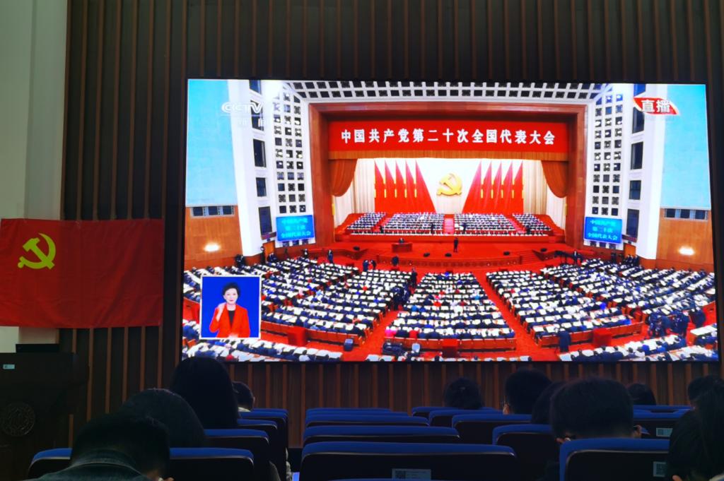 2022年10月16日,中国共产党第二十次全国代表大会在北京人民大会堂开幕。为深刻学习和领悟党的二十大会议精神,二十大开幕会当天,学院全体党员和积极分子通过多种媒介第一时间收听收看了党的二十大开幕会。全体党员认真学习党在百年奋斗中取得的伟大历史性成就,了解党在发展进程中提出的关键性决策,进一步激发了党员们的爱党爱国的热情。