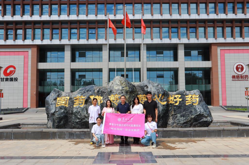 实践队首站来到始建于1929年的中华老字号企业——兰州佛慈制药股份有限公司。在企业文化展厅,讲解员向队员们详细介绍了该药企近百年的发展历程。从最初“科学提炼,改良国药”的创立初心,到抗战时期战时药品供应的爱国义举;从新中国成立后的西迁兰州,到改革开放后的产业升级;特别是十余年来,企业通过科技创新实现了向现代化制药企业的华丽转身。
